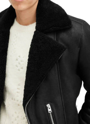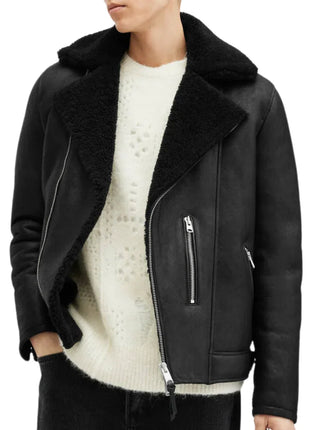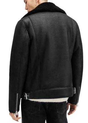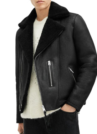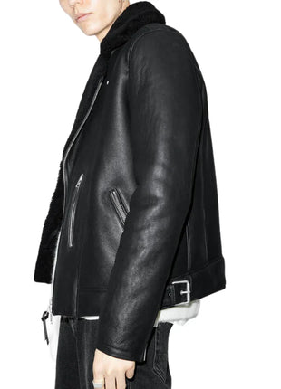 Archon Dyed Black Shearling Leather Biker Jacket Men's