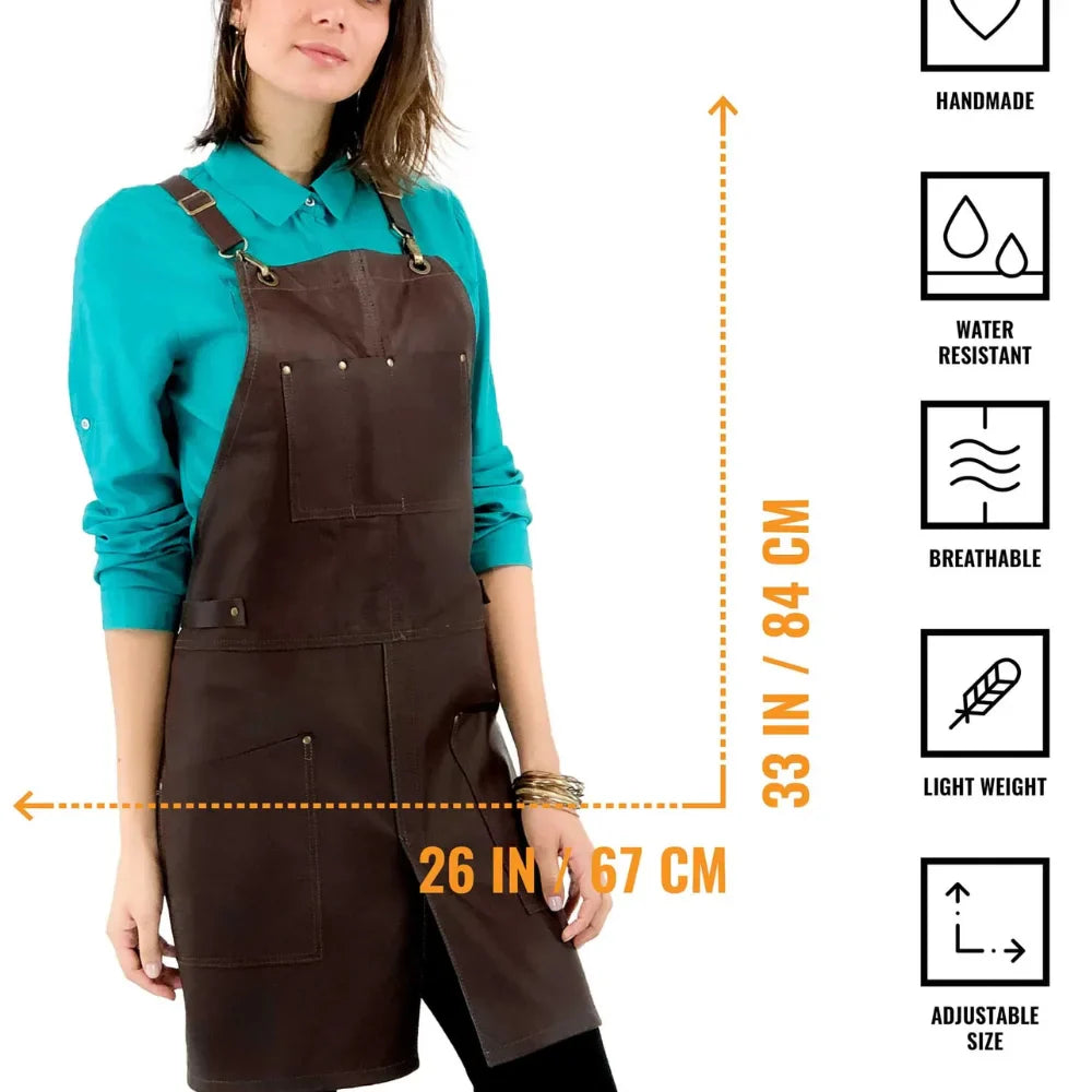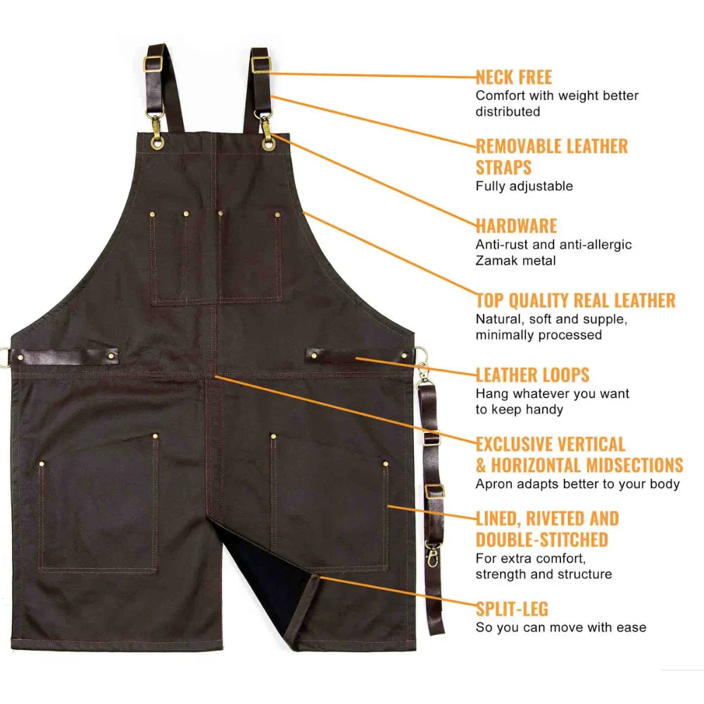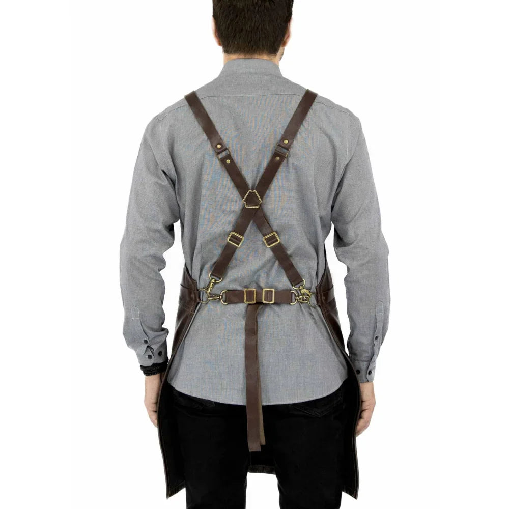 Bar Apron Leather with Pockets, Crossback Straps and Split-Leg Design