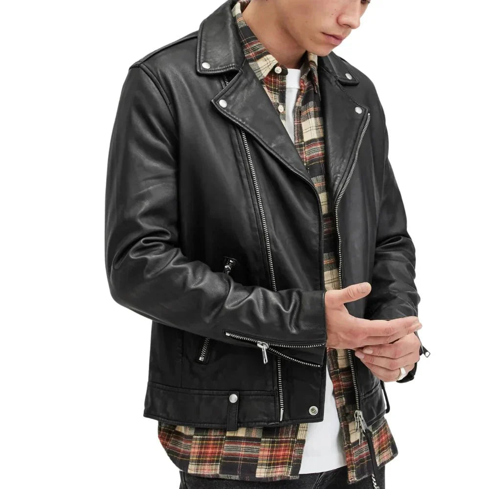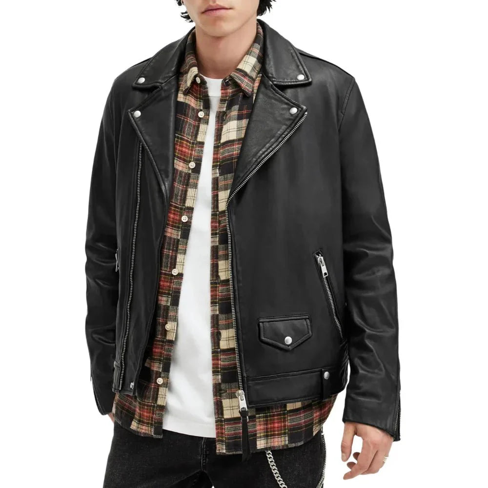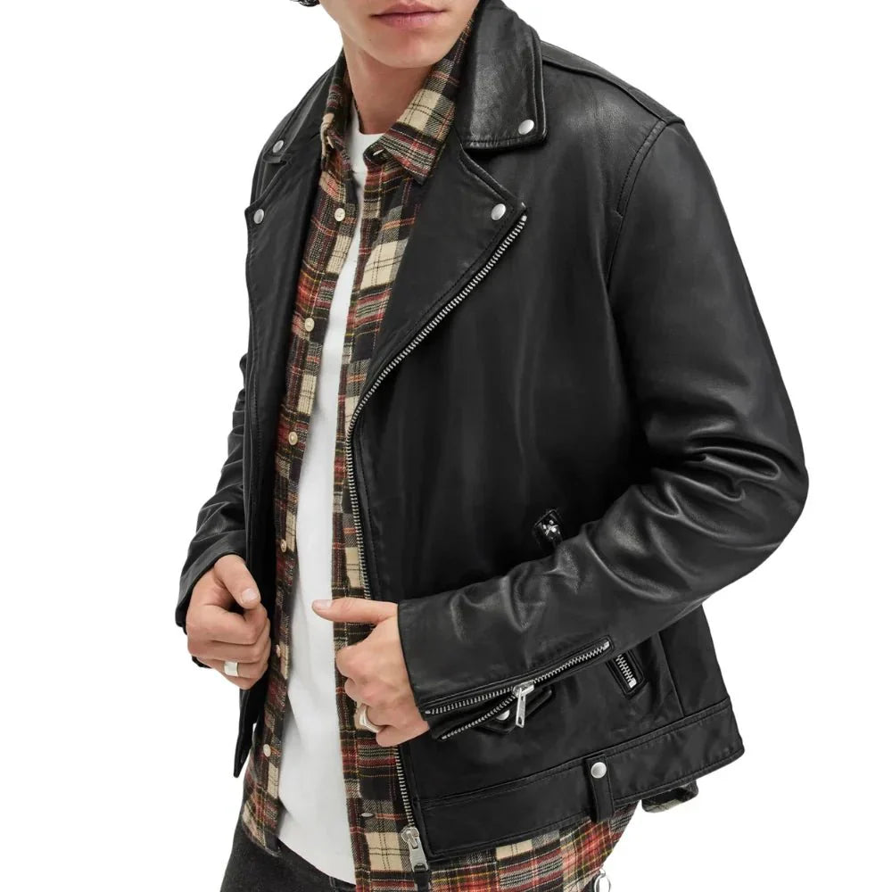 Berlin Black Leather Moto Jacket Mens
