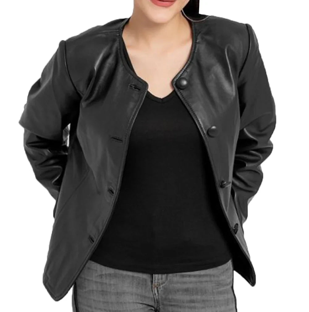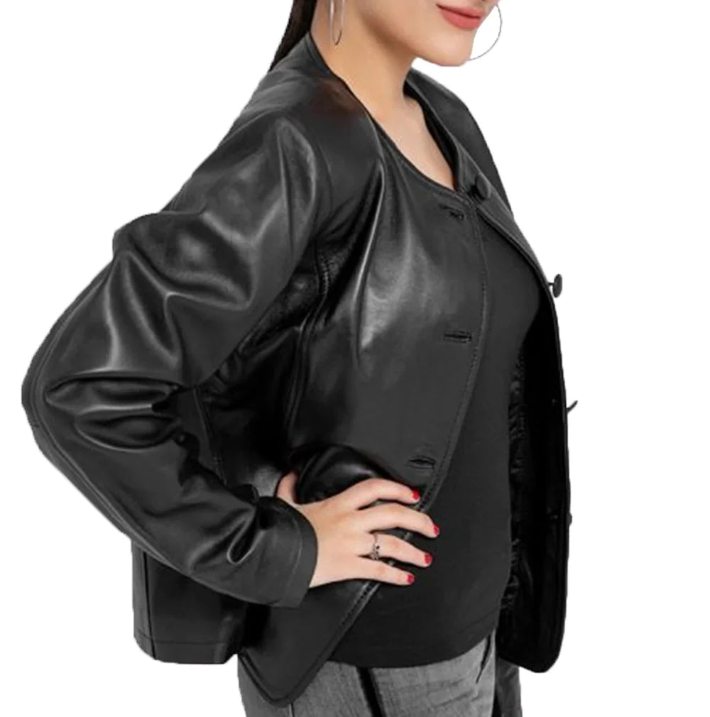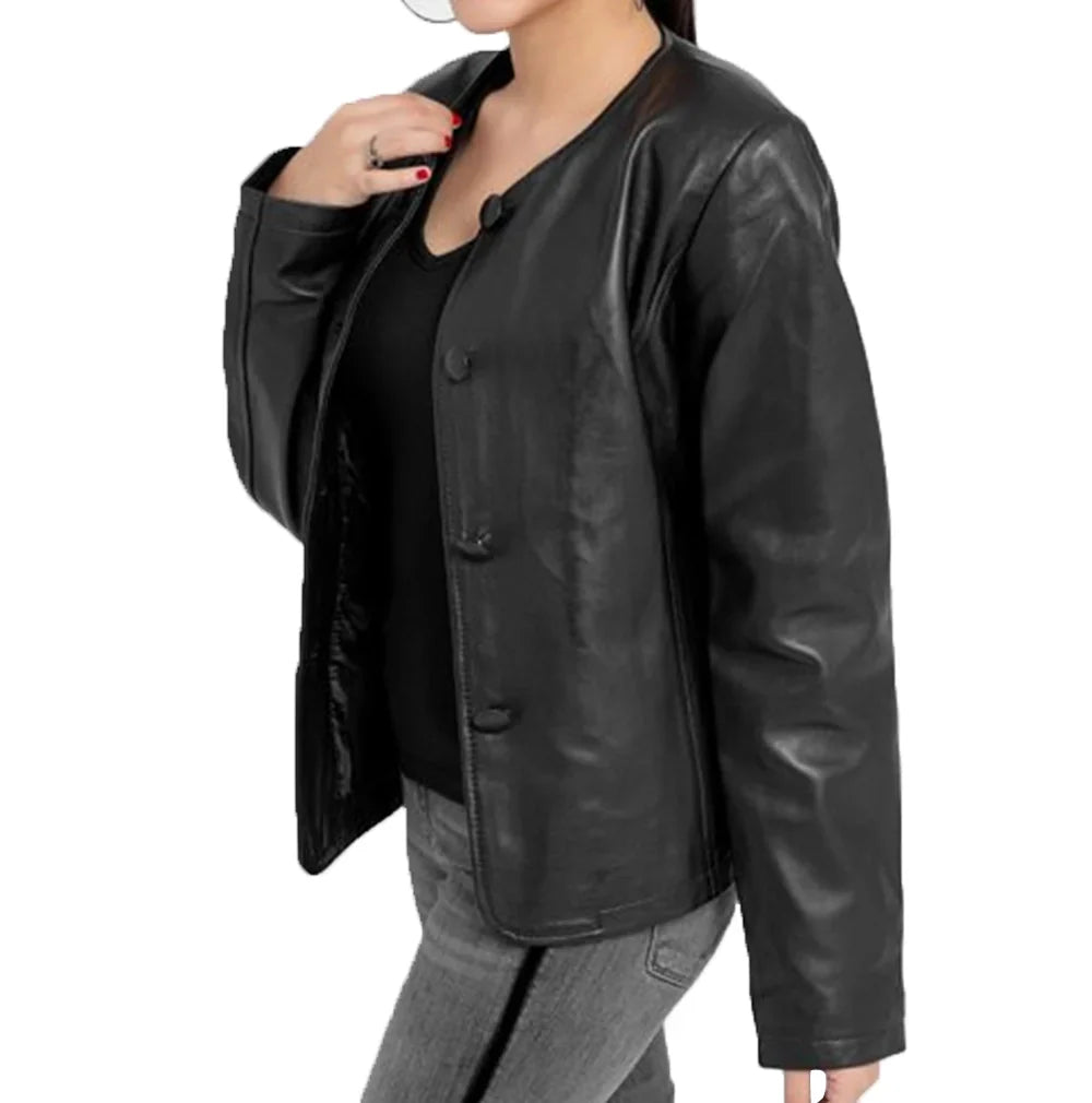 Eloise Black Shirt Style Leather Jacket Womens