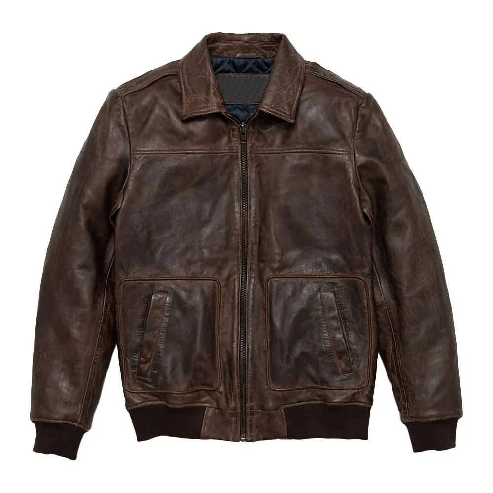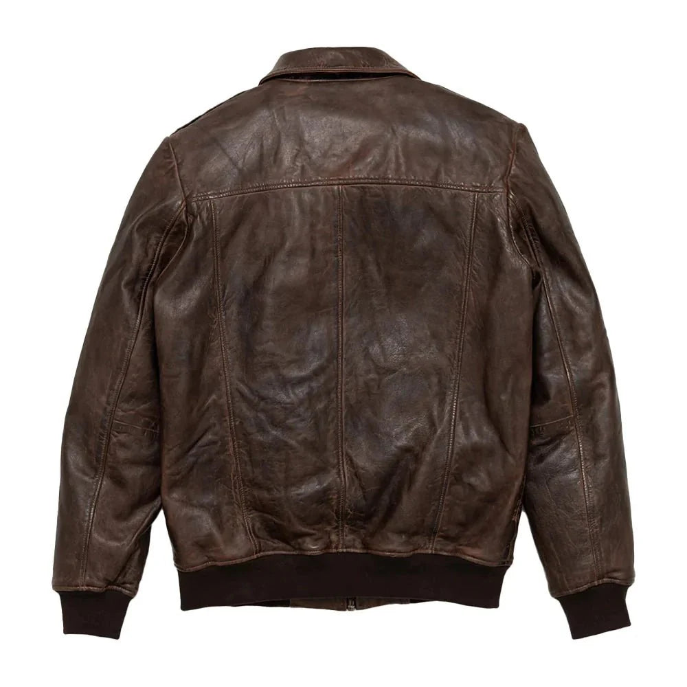 Maverick Vintage Brown Leather Bomber Jacket with Detachable Sherpa Collar