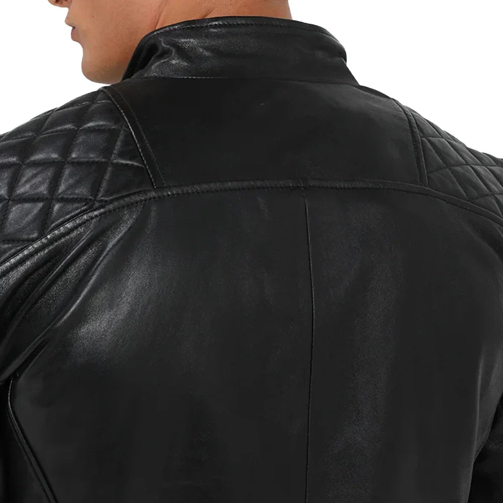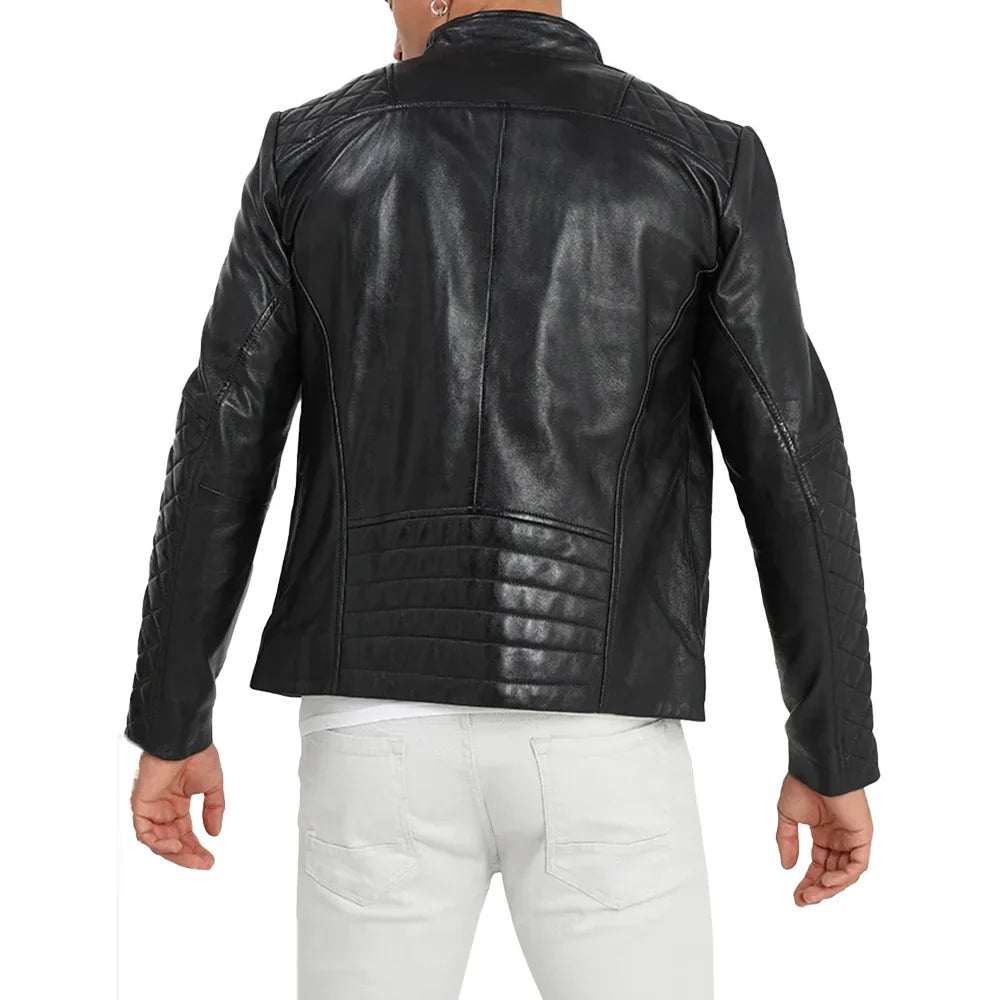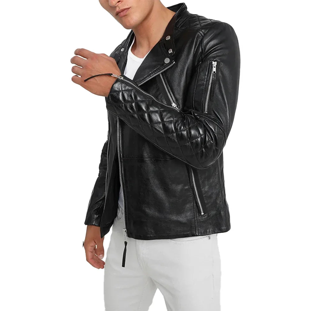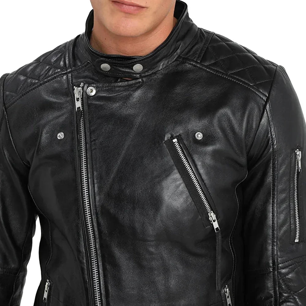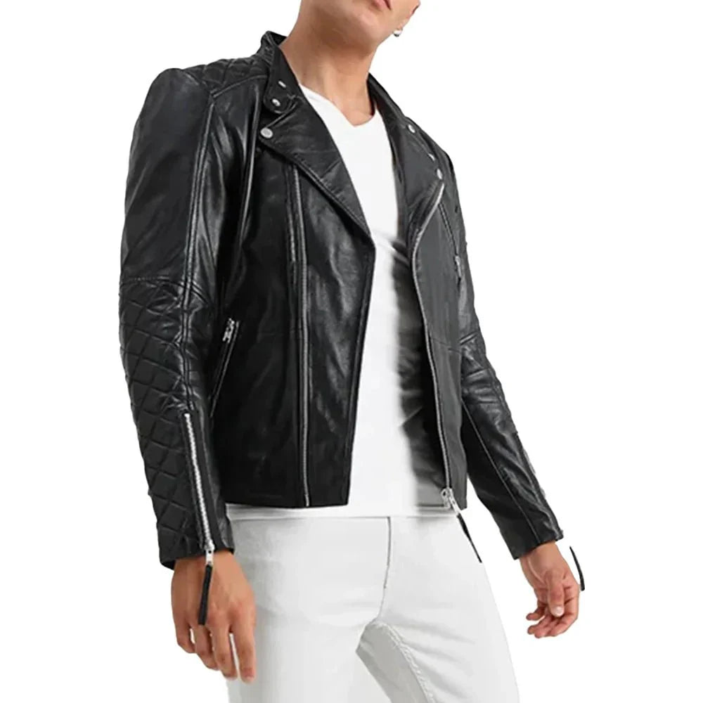 Men's Asymmetrical Black Quilted Leather Moto Jacket