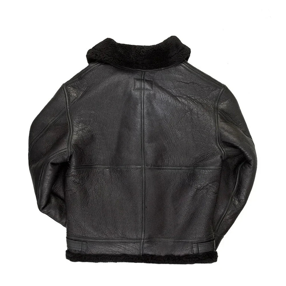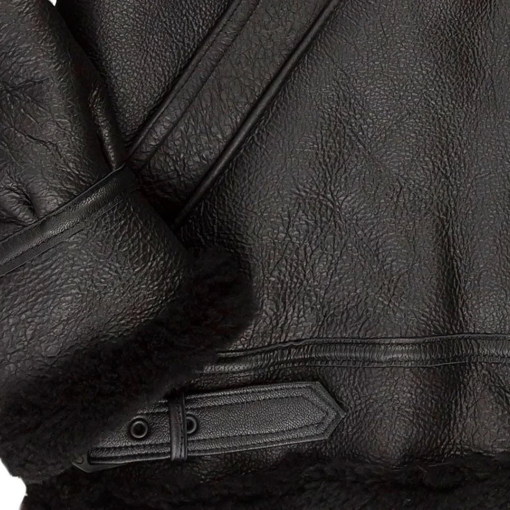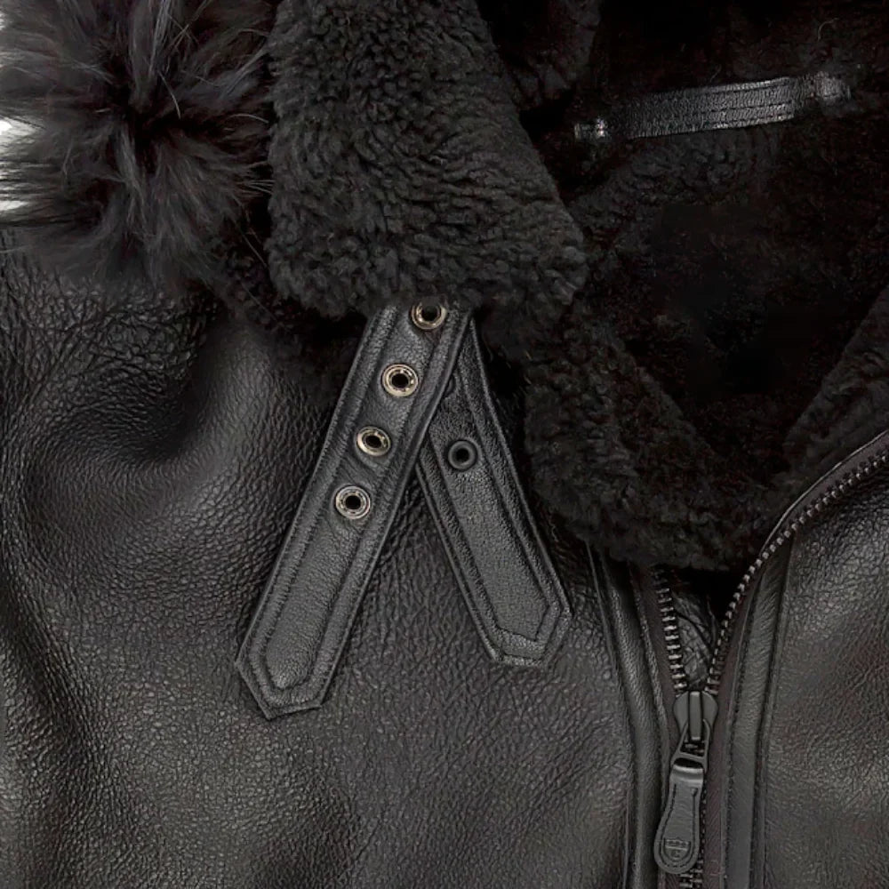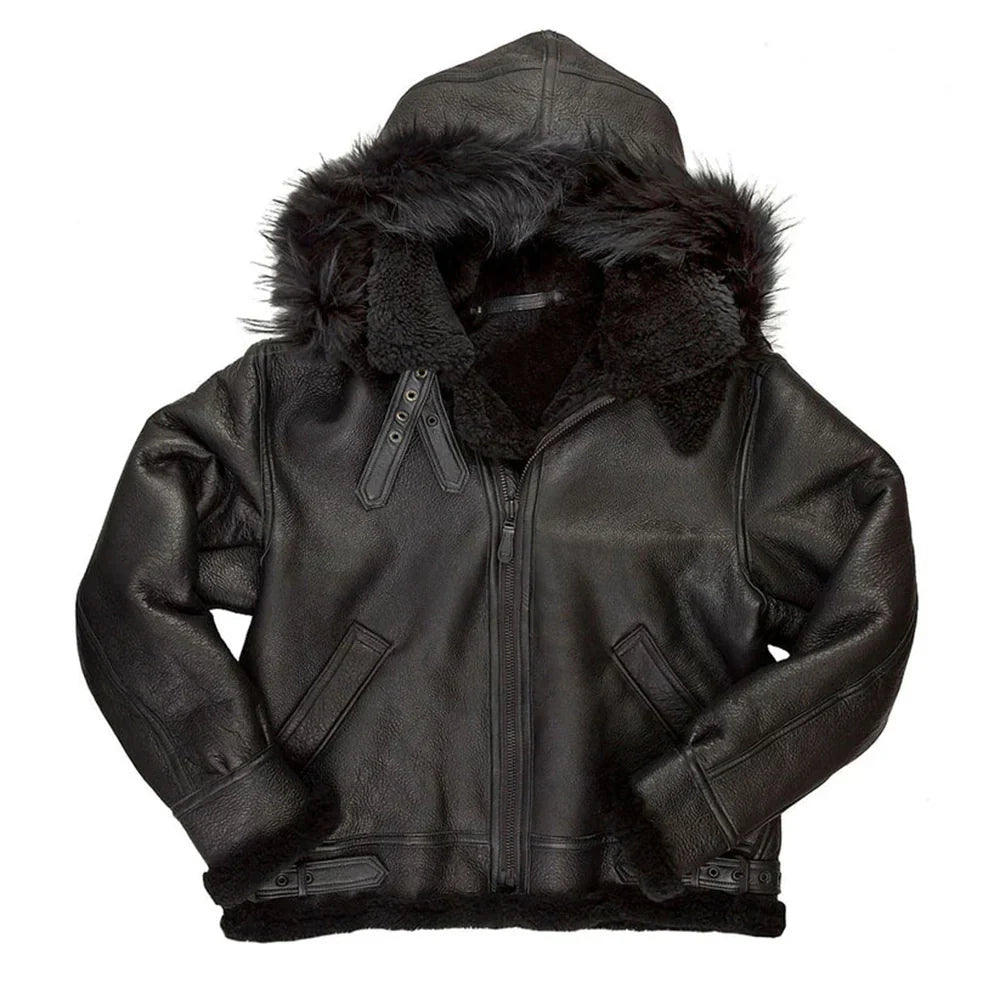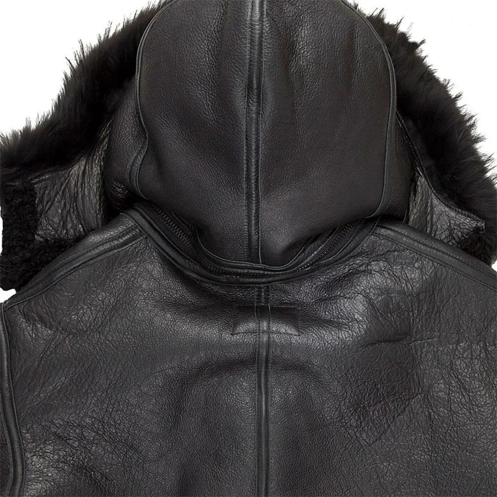 Mens Black Hooded B3 Shearling Aviator Leather Bomber Jacket