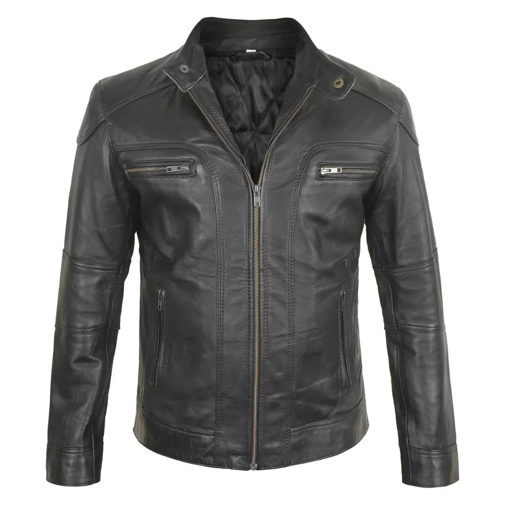Mens Black Hooded Bker Leather Jacket With Removable Hood