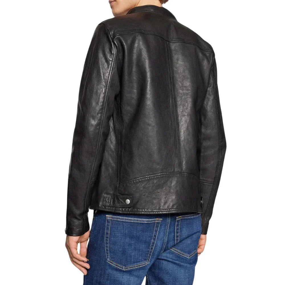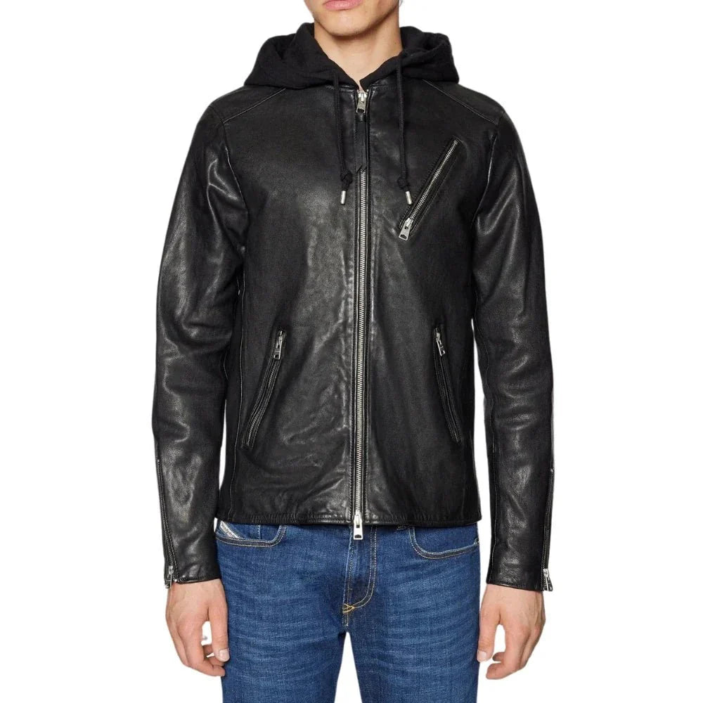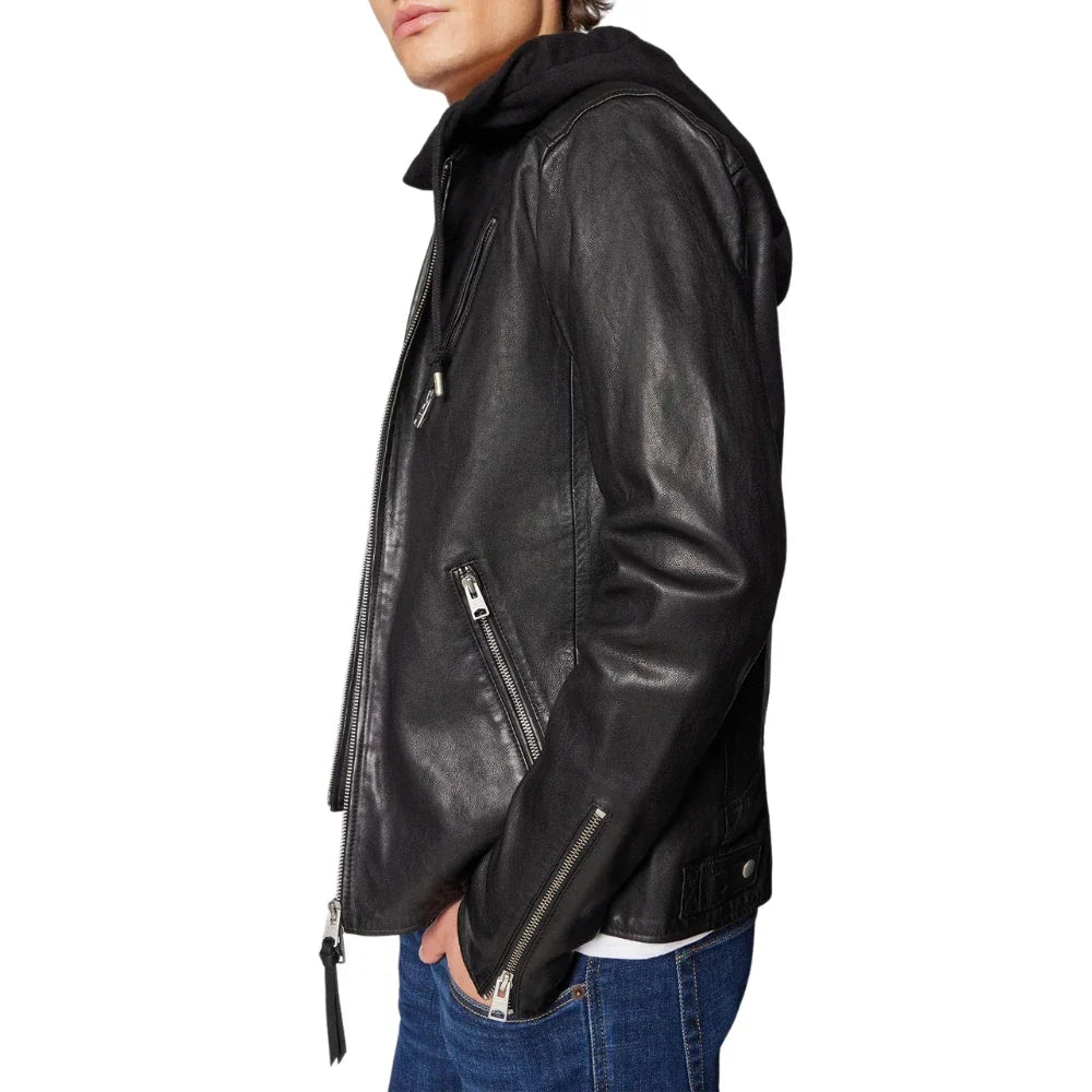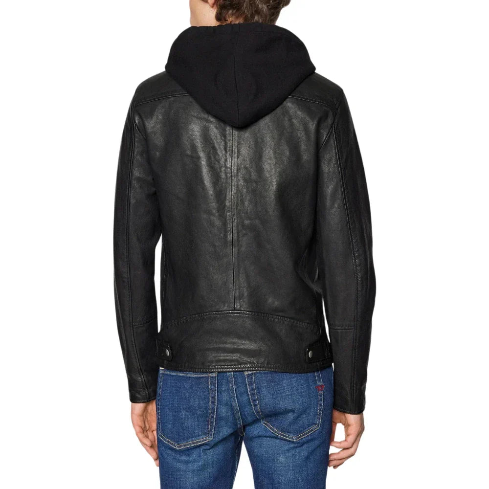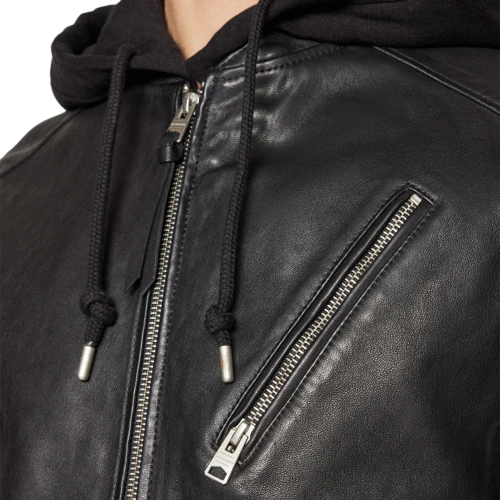 Men's Black Hooded Leather Bomber Jacket