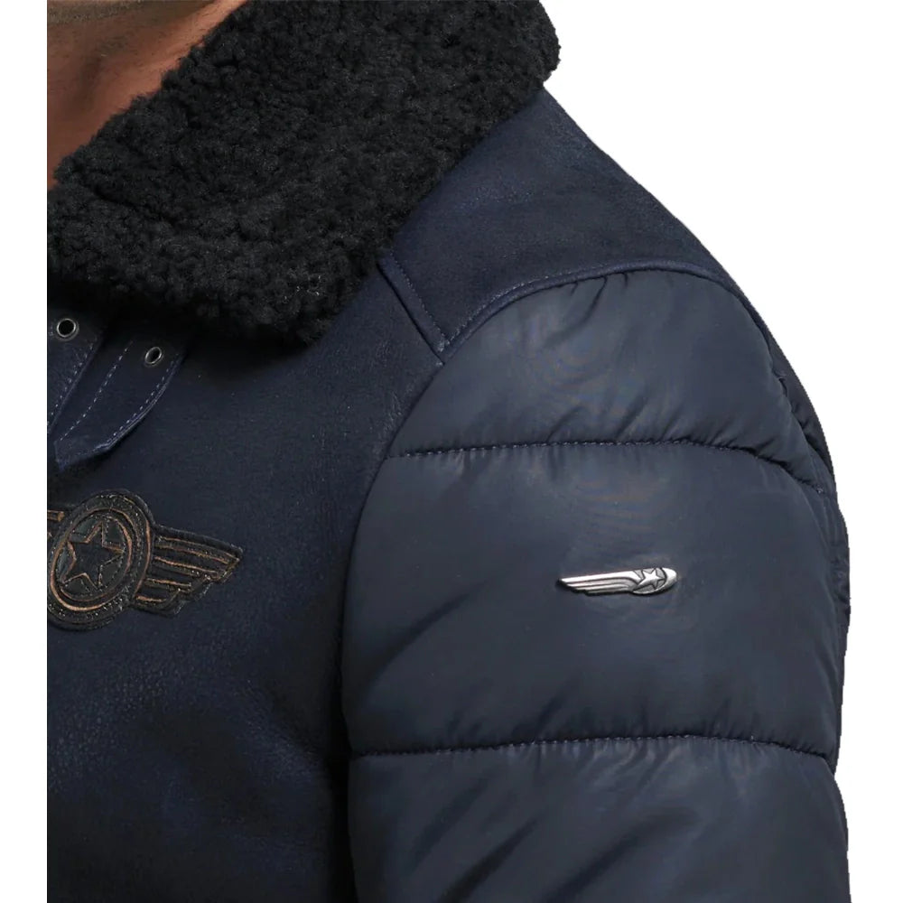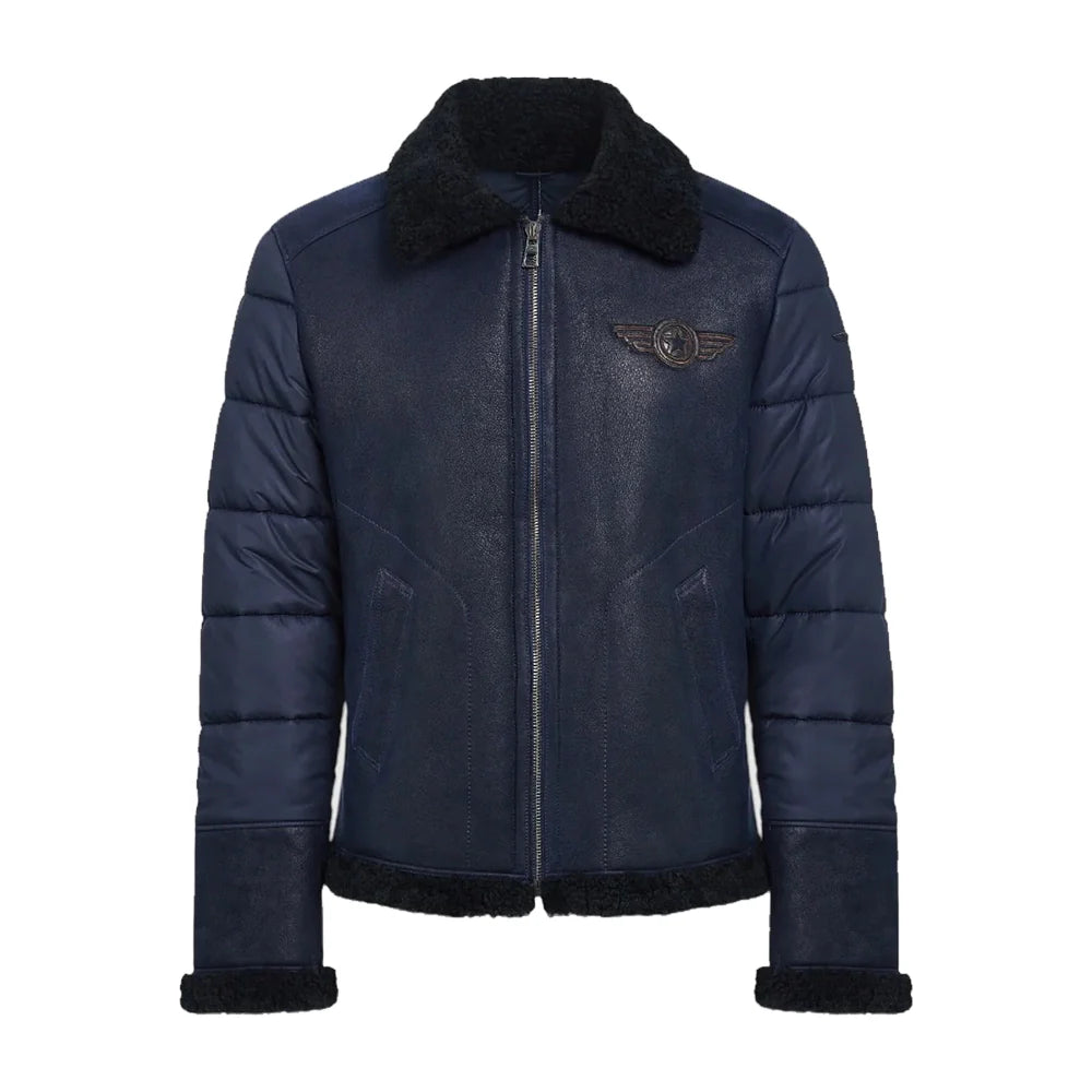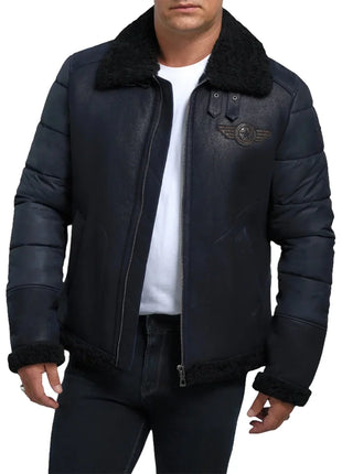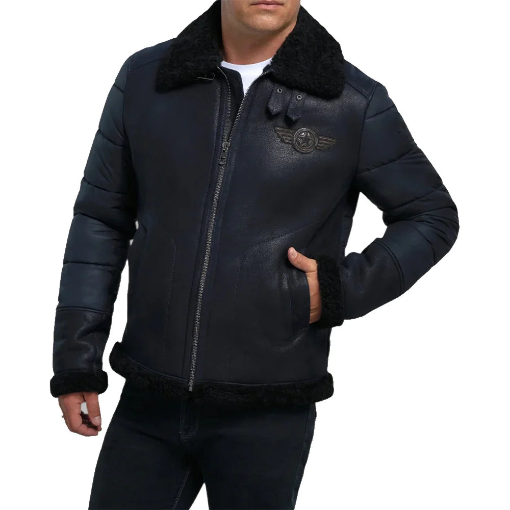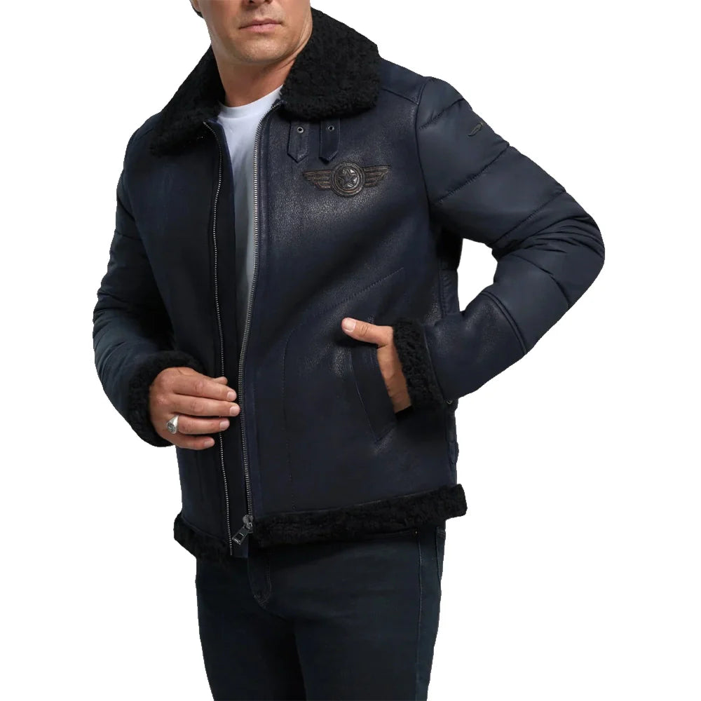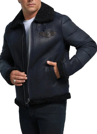 Men's Blue B3 RAF Aviator Sheepskin Shearling Leather Jacket