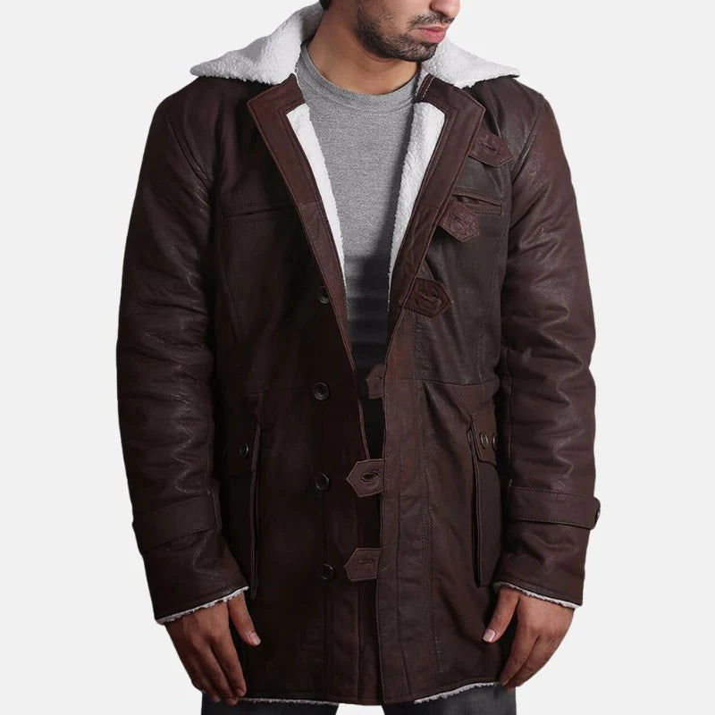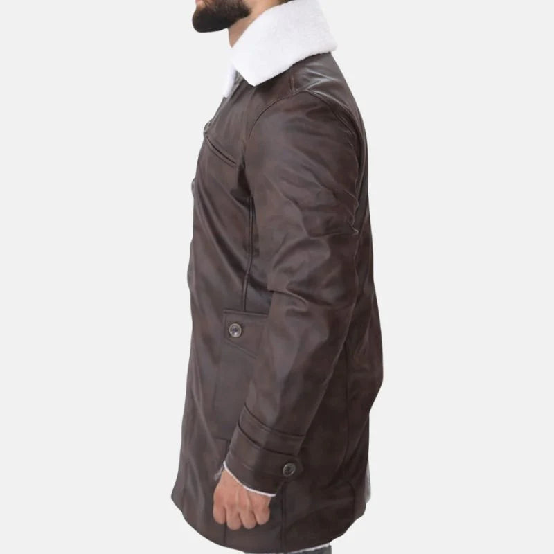 Mens Brown Bane Shearling Leather Coat