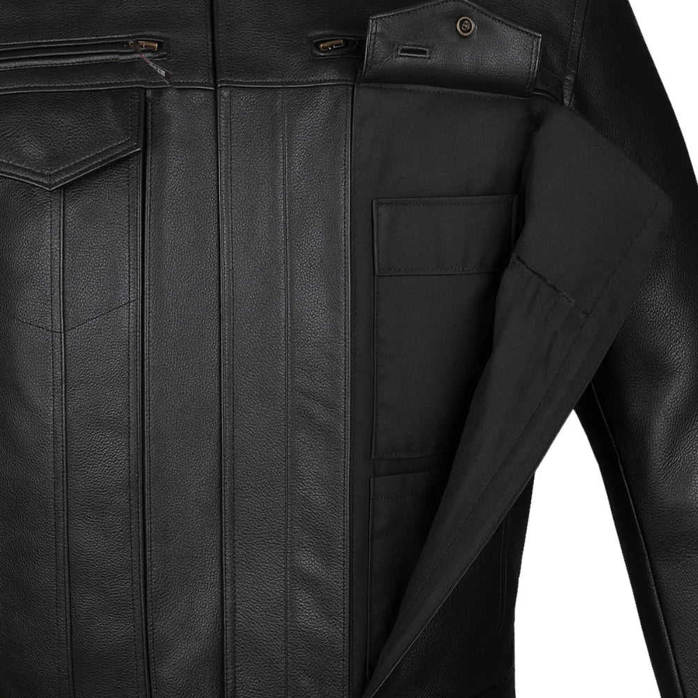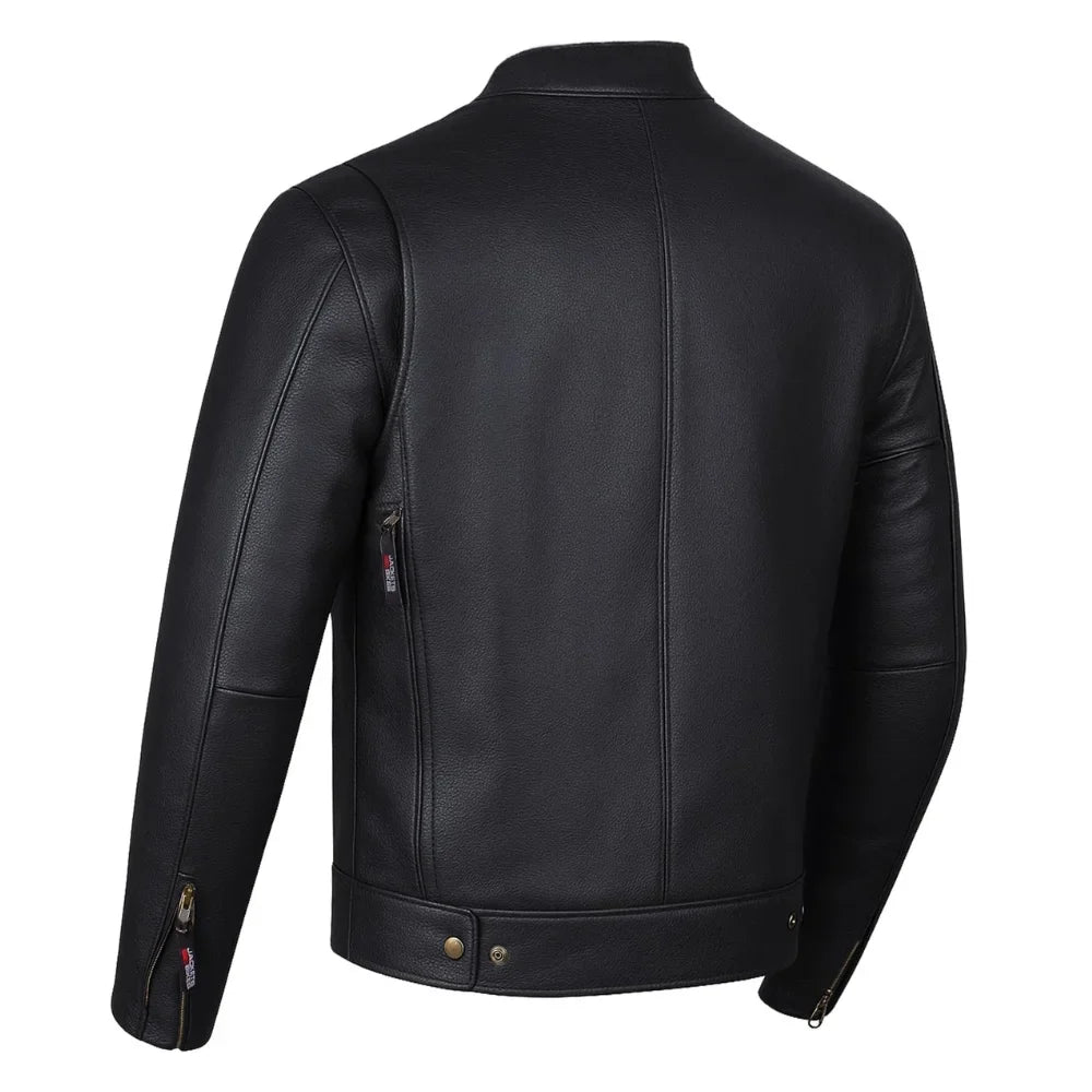 Men's Buffalo Leather Black Motorcycle Jacket with Removable CE Armor