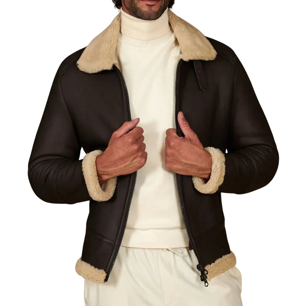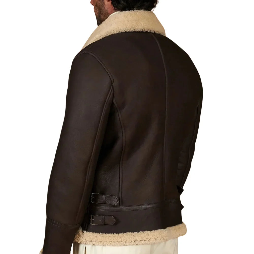 Men's Dark Brown Shirt Collar Shearling Lamb Biker Jacket