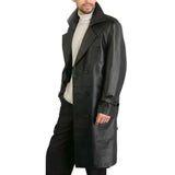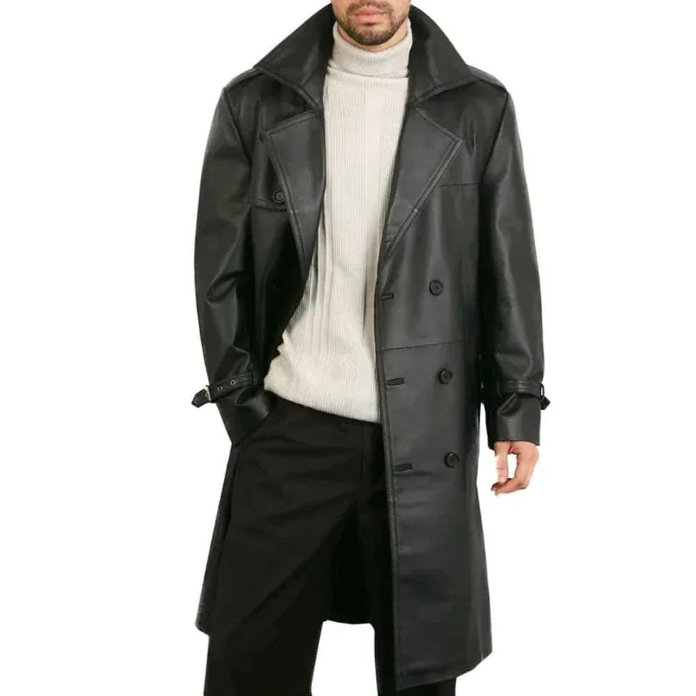 Mens Double Breasted Black Lambskin Leather Trench Coat