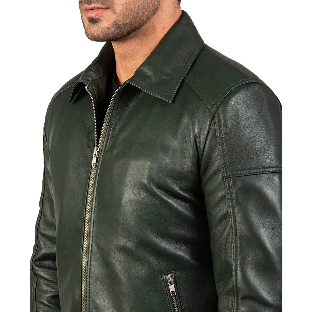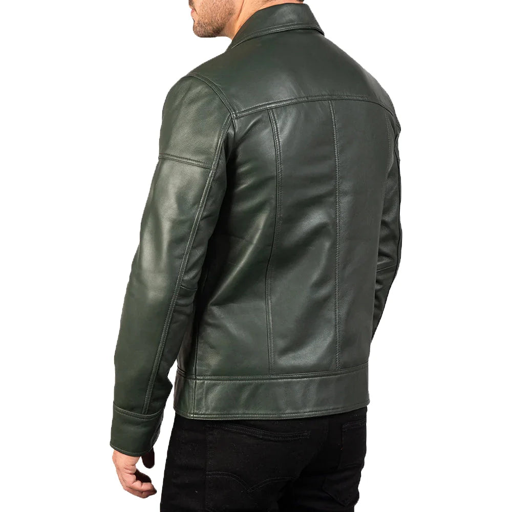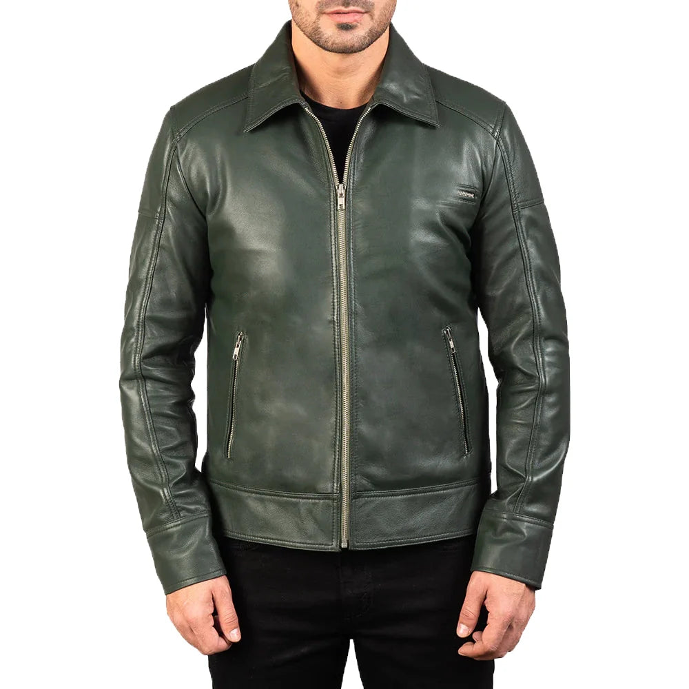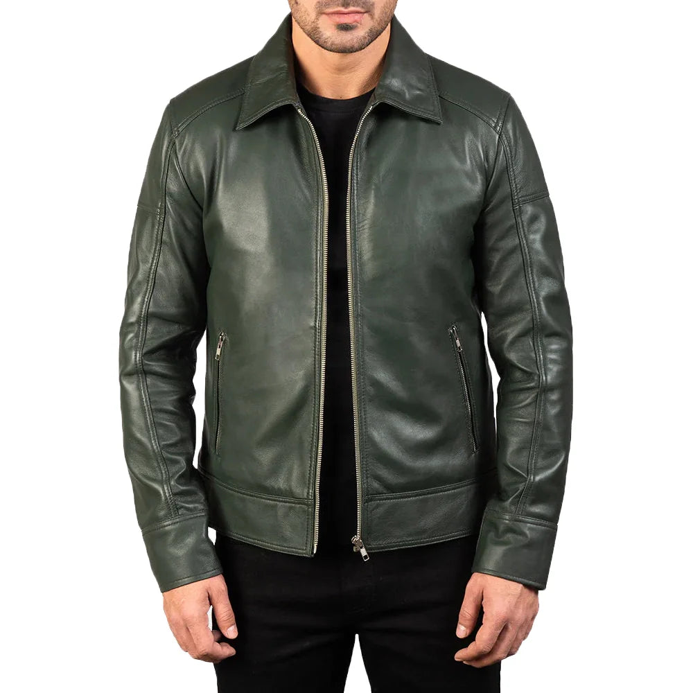 Crafted for style and built to last, this Men’s Green Real Leather Biker Jacket is the ultimate blend of rugged durability and everyday comfort. Made from premium sheepskin leather, it offers a soft yet tough exterior that naturally ages with character.