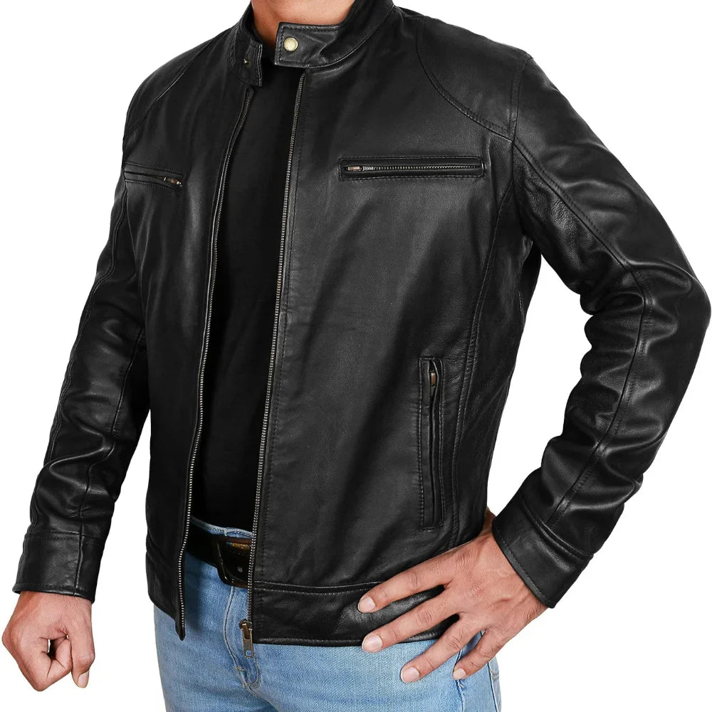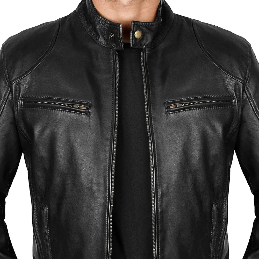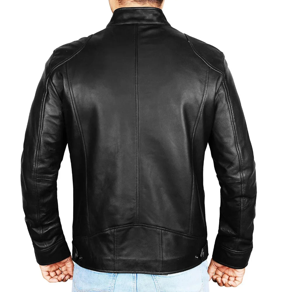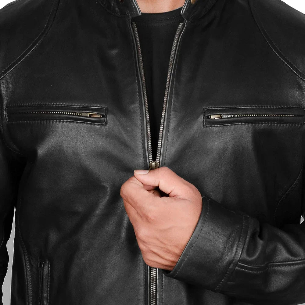 Men's Lambskin Leather Black Cafe Racer Jacket