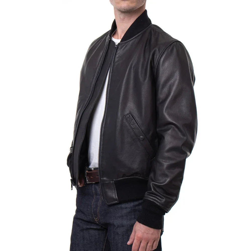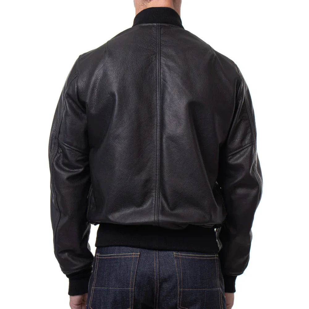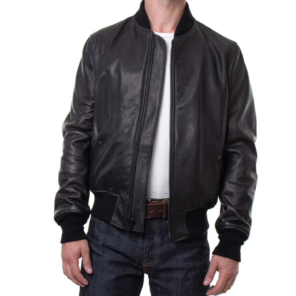 Men's Lightweight Black Cowhide Leather Bomber Jacket