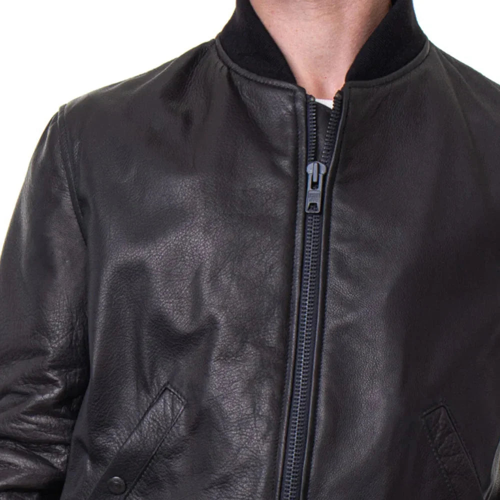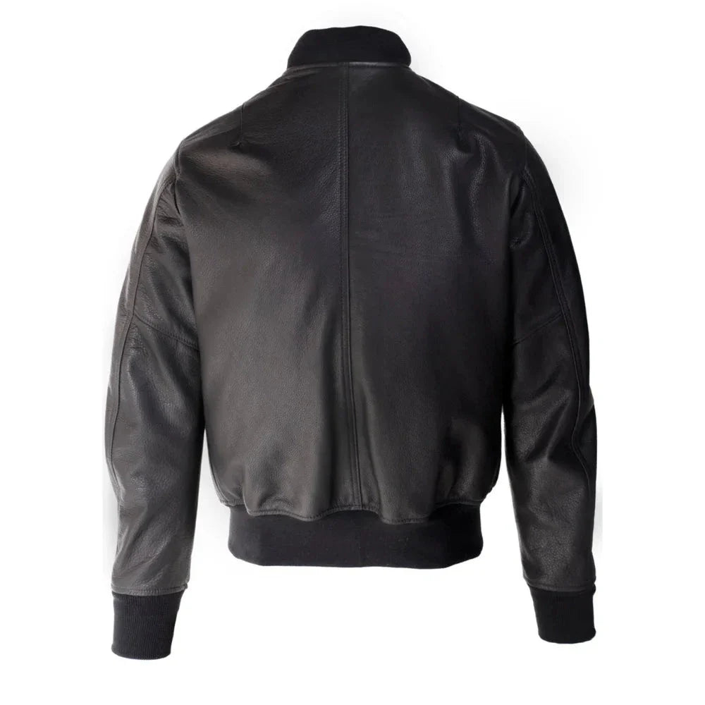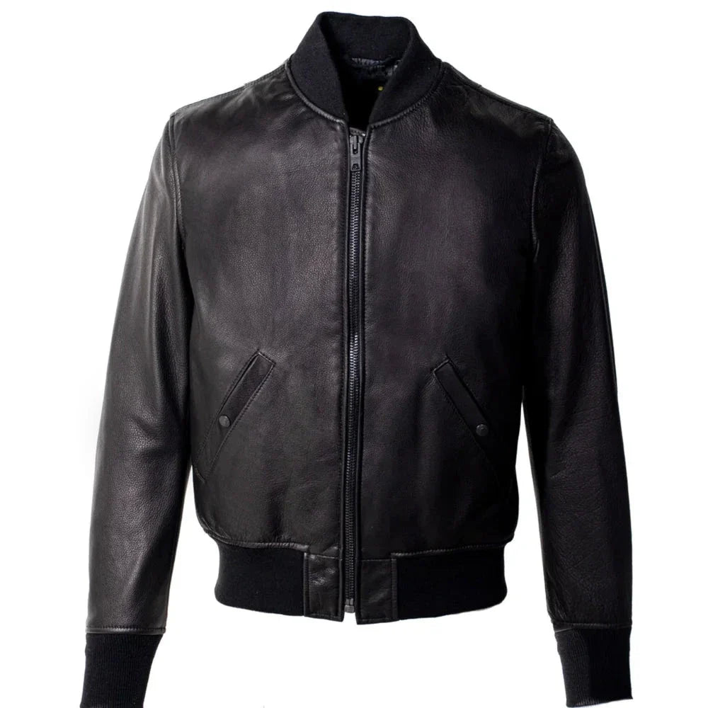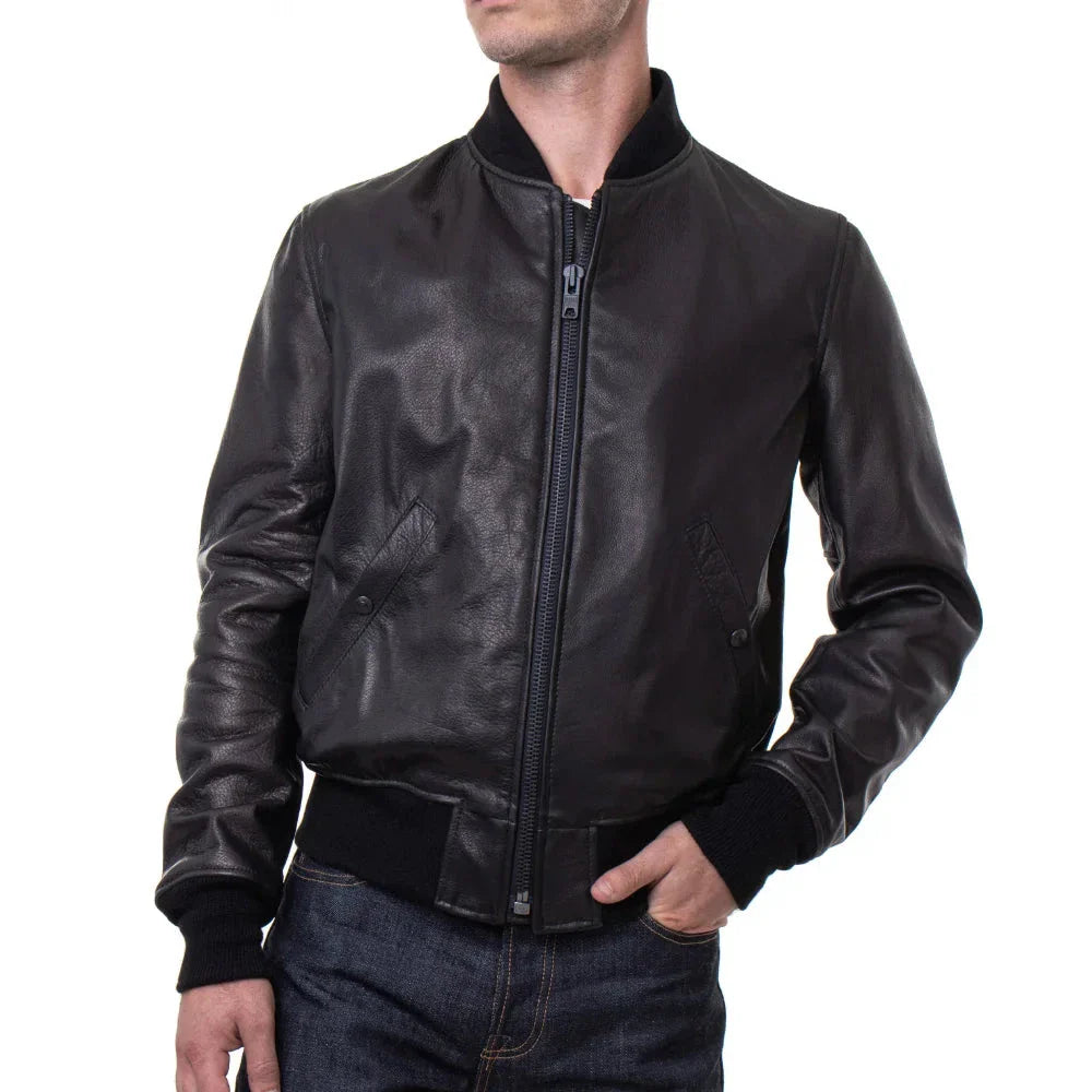 Men's Lightweight Black Cowhide Leather Bomber Jacket