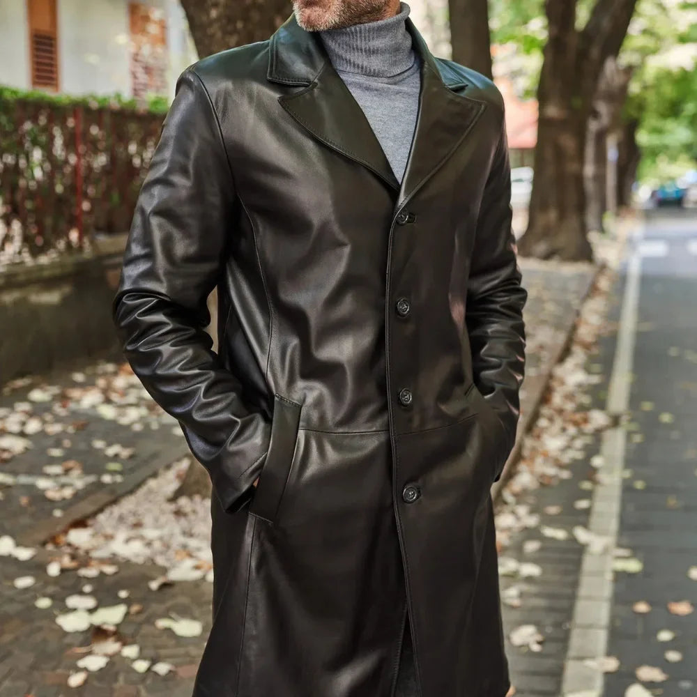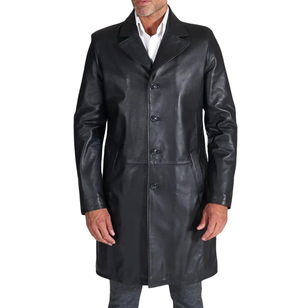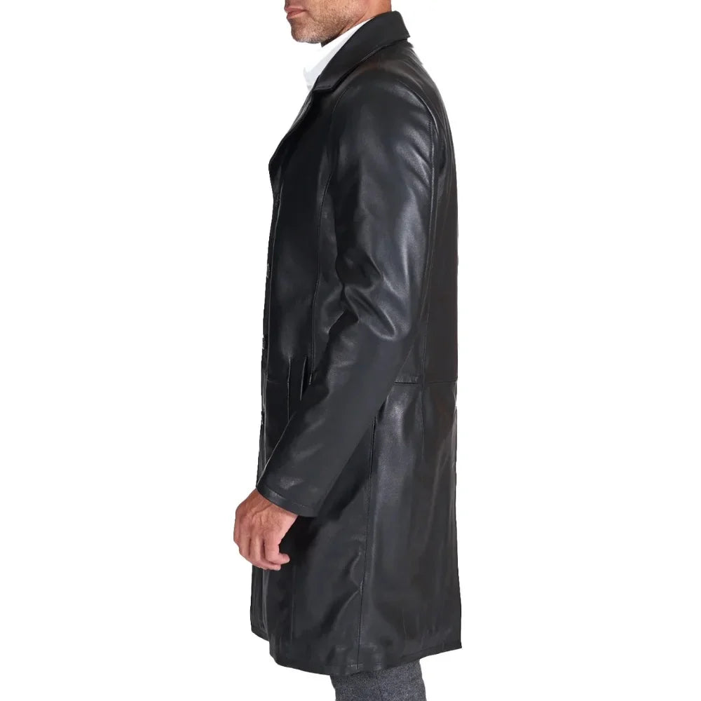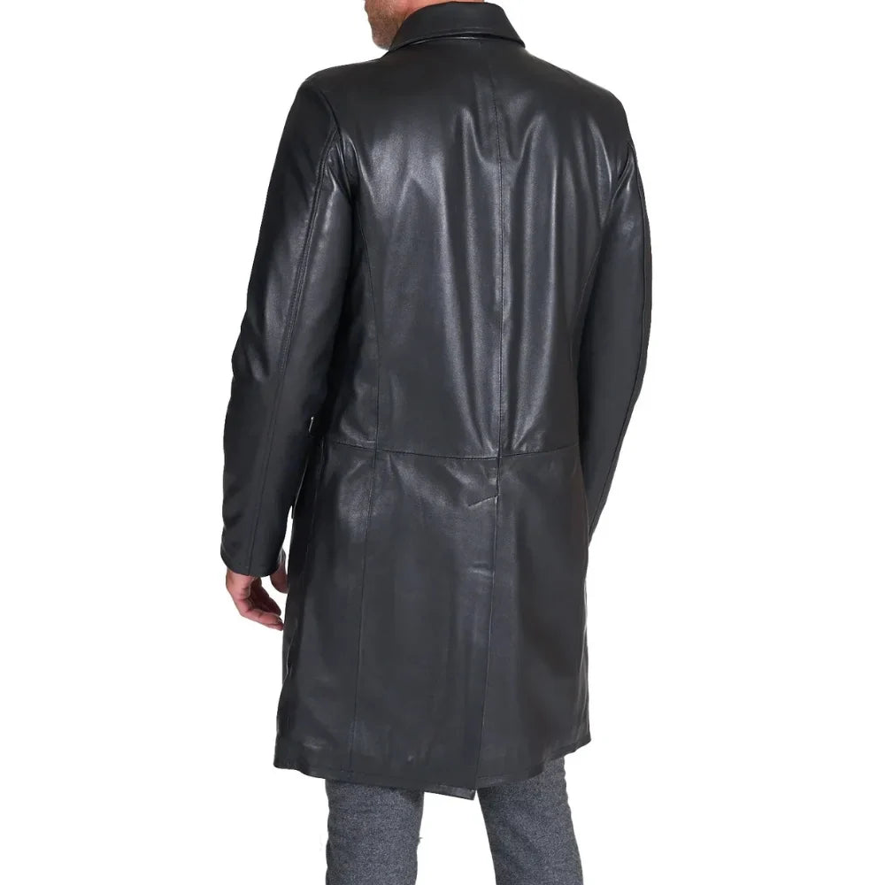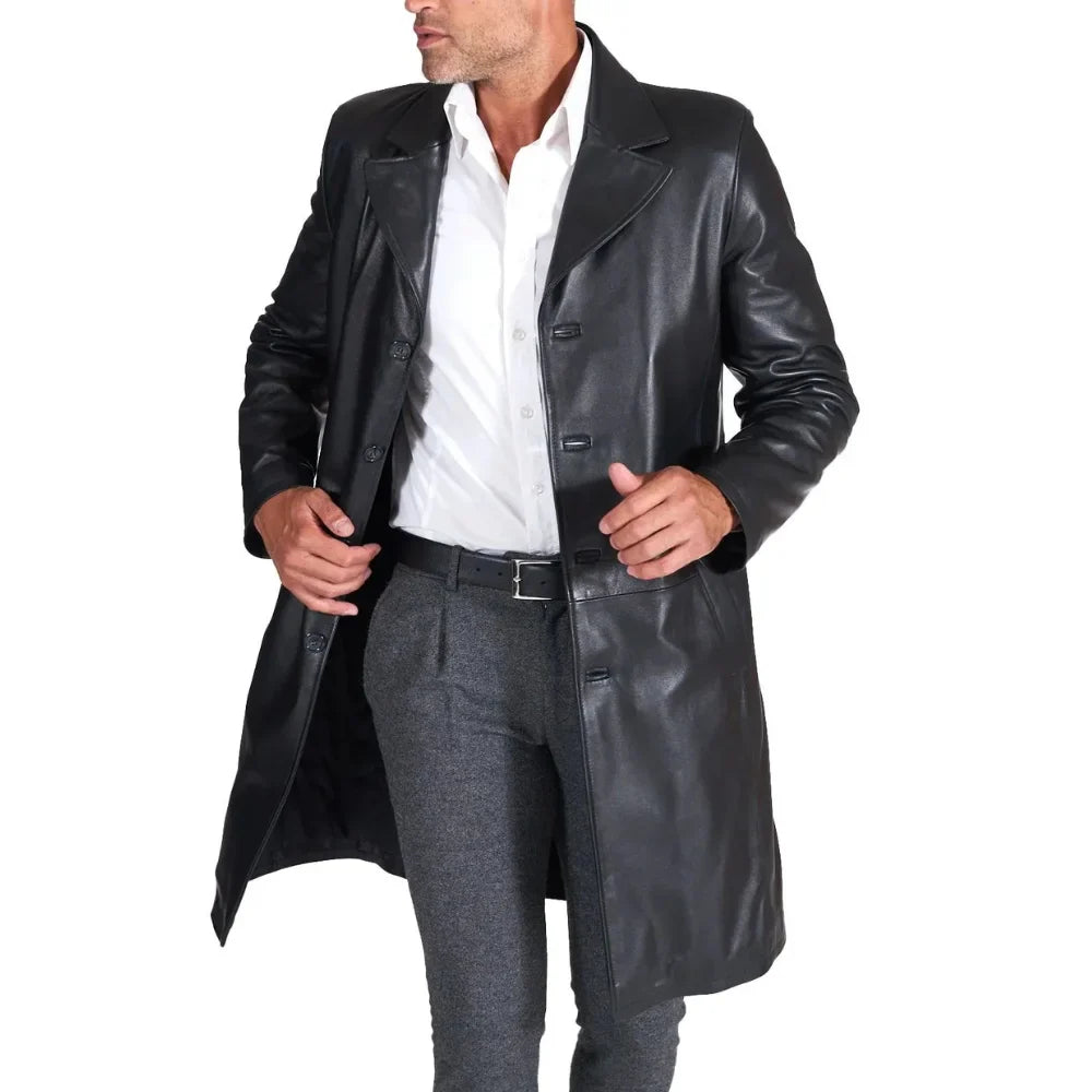 Men's Long Real Black Lamb Leather long Coat