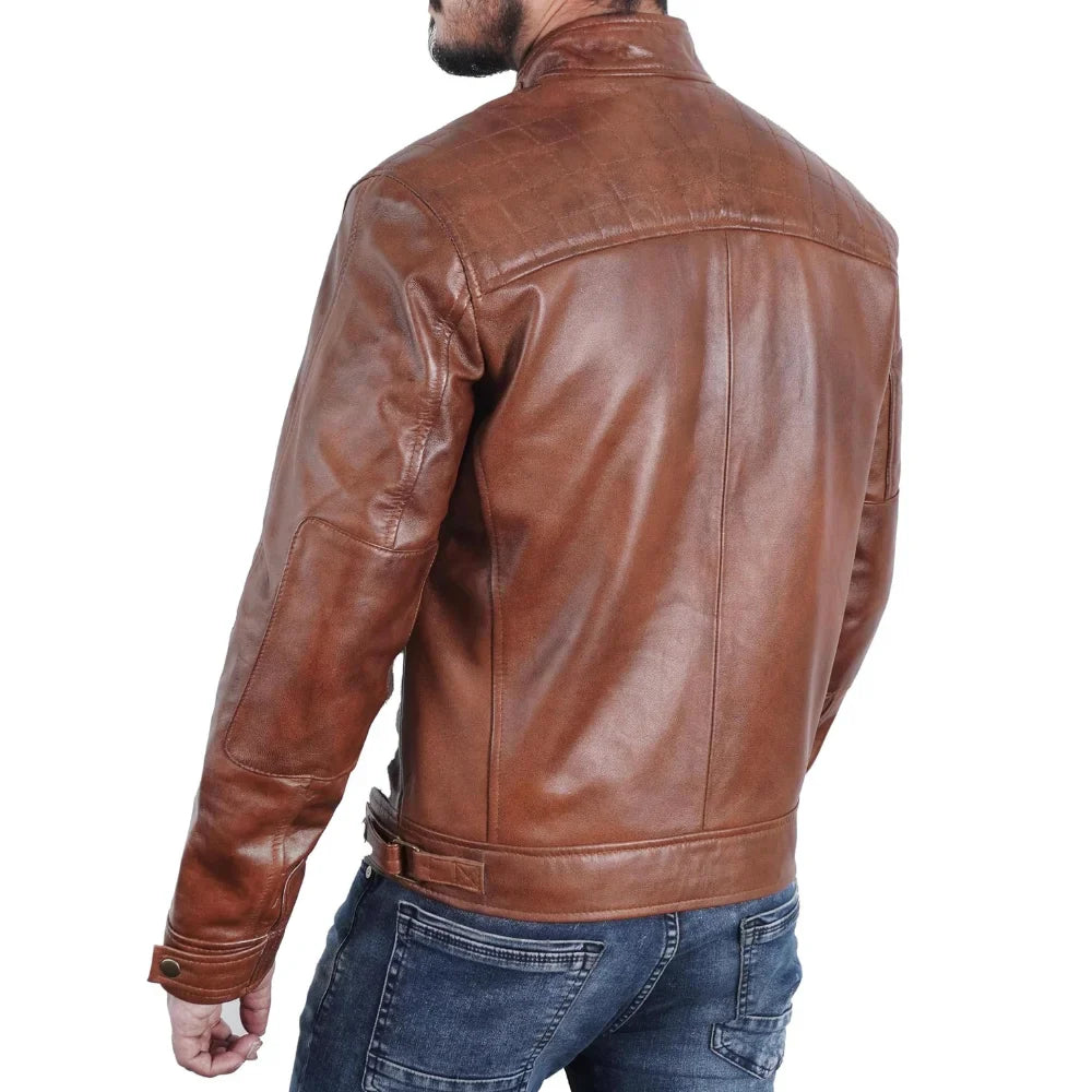 Men's Quilted Shoulders Café Racer Cognac Leather Jacket