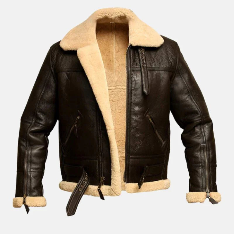 Men's RAF B3 Shearling Aviator Dark Brown Leather Jacket