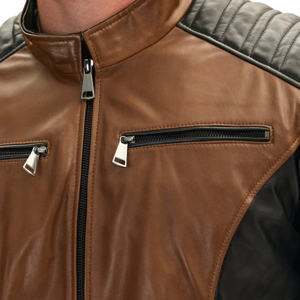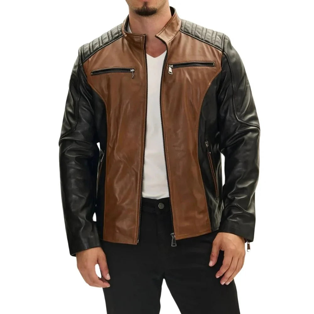 Roadster Two Tone Men's Black and Brown Leather Jacket
