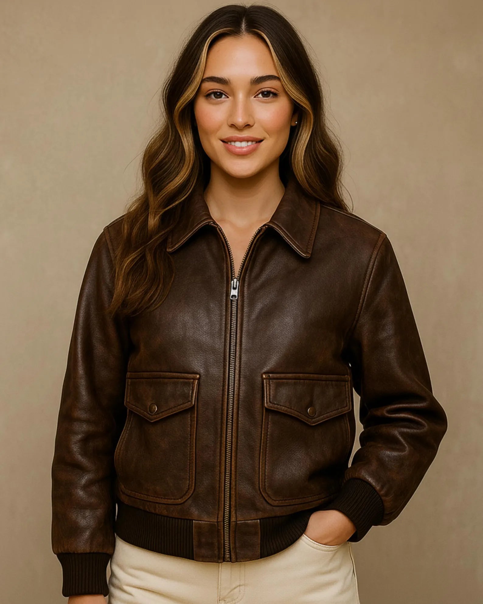 Women’s Handmade Leather Bomber Jacket Vintage Aviator Style in Full-Grain Top-Grain & Genuine Leather Cotton Lined