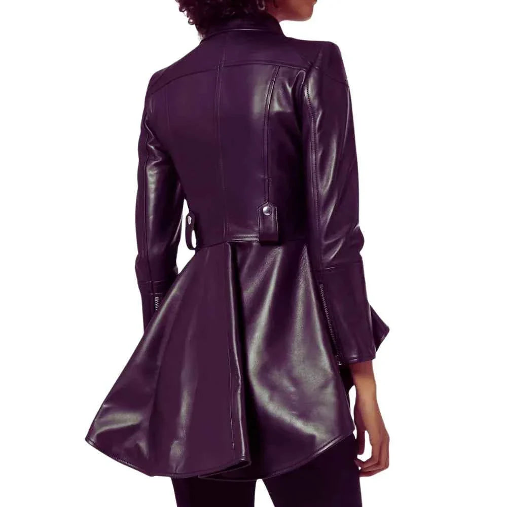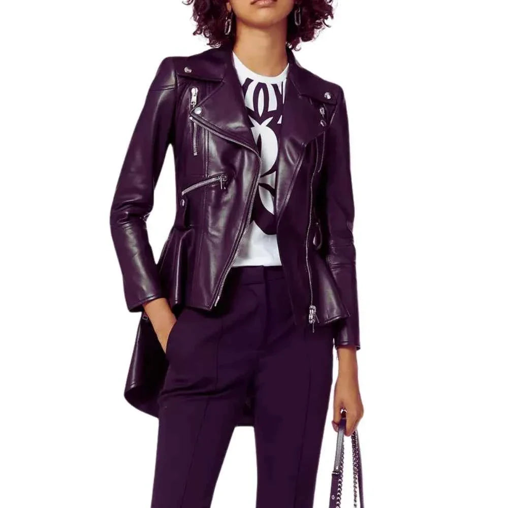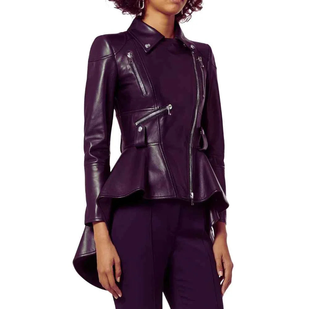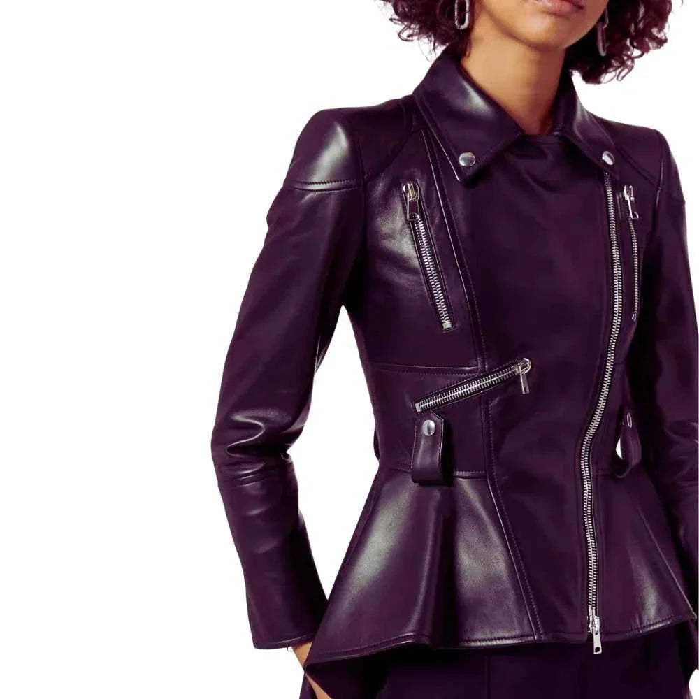 Purple Peplum Leather Motorcycle Jacket For Womens