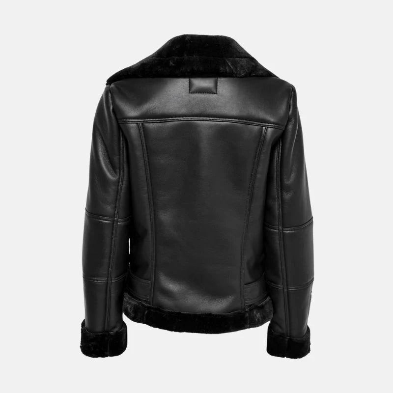 Black Asymmetrical Shearling Womens Aviator Jacket