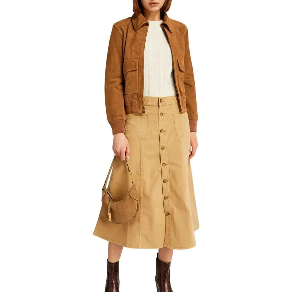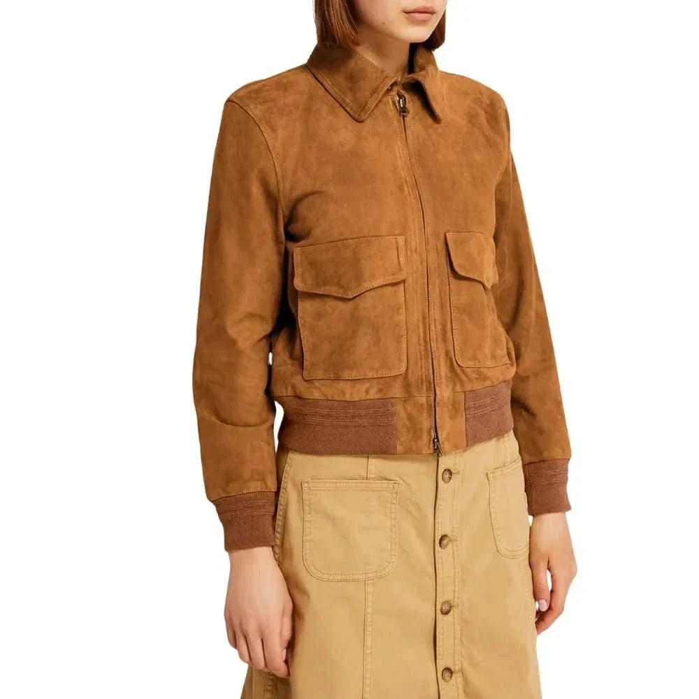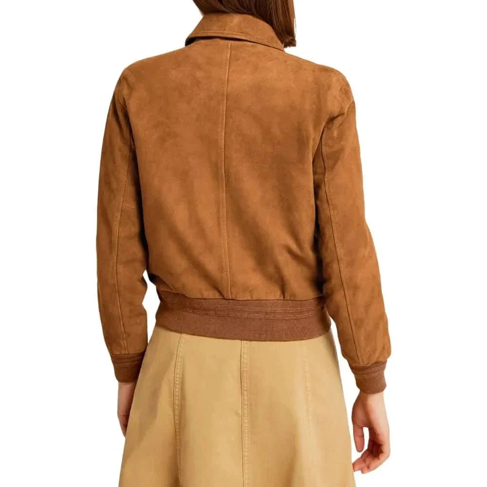 Womens Camel Lauren Brown Suede Bomber Jacket