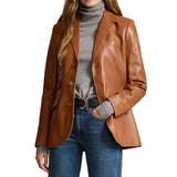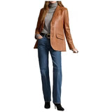 Womens Lambskin Brown Leather Blazer